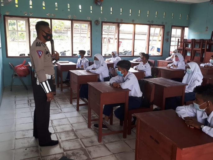 Satlantas Polres Lingga Sosialisasikan Kamseltibcar lantas dan Prokes Ke Pelajar