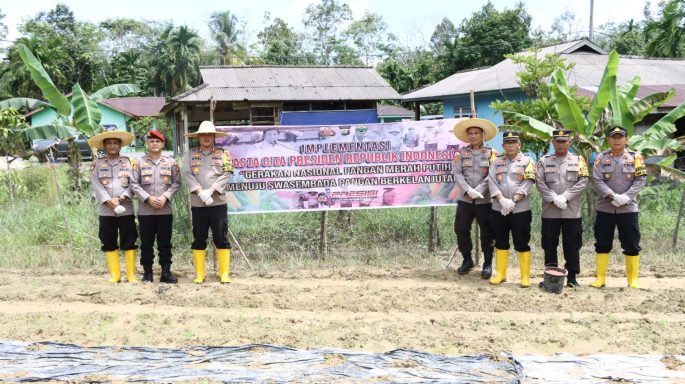 AKBP Apri Fajar Hermanto, S.I.K., Kapolres Lingga Pimpin Penanaman Bibit Semangka dan Pemupukan Jagung di Lahan Ketahanan Pangan Polres Lingga