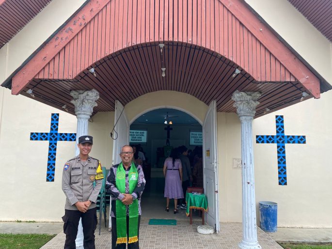Bripka Fitri Hardiansyah dan Briptu Paradis Aditya Saydi Amankan Ibadah Minggu di Gereja GPDI Betung