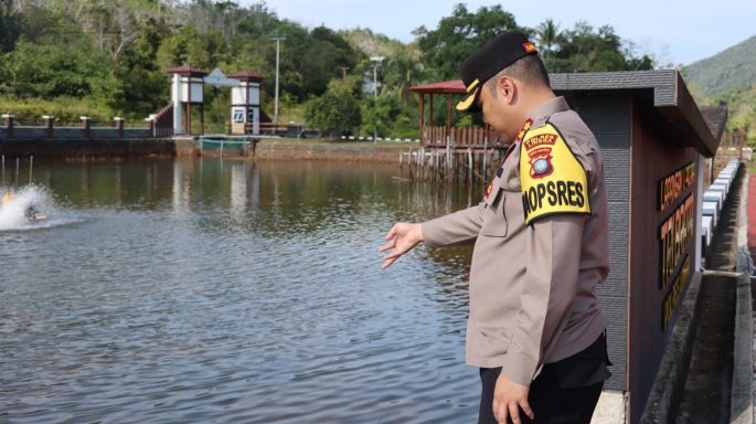 AKBP Apri Fajar Hermanto, S.I K., Tebar 10.000 Benih Ikan Nila ke Kolam Ketahanan Pangan Perikanan Polres Lingga
