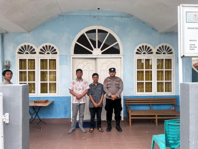 Bripda M. Iqbal dan Bripda Mitro Faisal Pasaribu Laksanakan Patroli dan Pengamanan Gereja