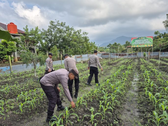 Polri Jadi Motor Ketahanan Pangan: Polsek Daik Lingga Aktif Rawat Tanaman Jagung Di Lahan Perhutanan Sosial