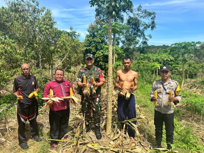 Bhabinkamtibmas Desa Berindat Dampingi Petani Panen Jagung Pipil