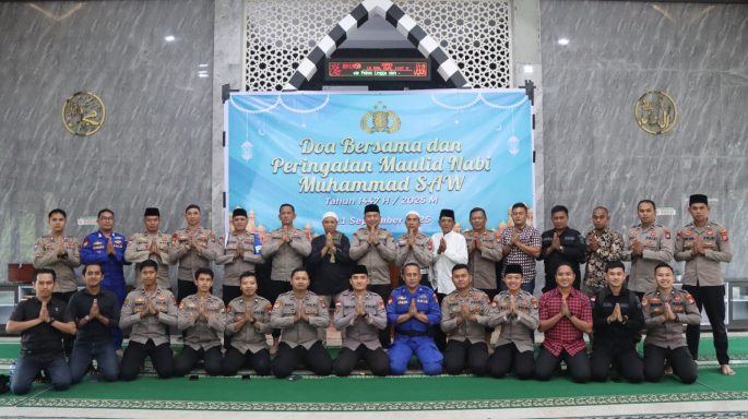 LINGGA – Dalam rangka memperingati Maulid Nabi Muhammad SAW 1447 H / 2025 M, Polres Lingga menggelar kegiatan doa bersama dan tausiyah keagamaan yang berlangsung khidmat di Masjid Al-Munawar, Mapolres Lingga, Kegiatan ini dihadiri oleh jajaran kepolisian, tokoh agama, dan masyarakat sekitar. Kamis (11/9/2025). Dengan mengusung tema “Meneladani Akhlak Rasulullah untuk Mewujudkan Kamtibmas yang Aman…