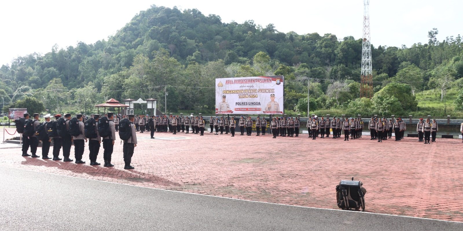 AKBP Apri Fajar Hermanto, S.I.K., Kapolres Lingga dalam sambutannya mengatakan bahwa Pelaksanaan Apel Pergeseran Pasukan ini merupakan kegiatan dalam manajemen Operasi Mantap Praja Seligi 2024, sebagai Langkah untuk mengecek Persiapan dan Kesiapan Personel Pengamanan TPS serta untuk mengecek Sarana dan Prasarana pendukung seperti Perlengkapan Dalmas dan Mobil Water Canon.