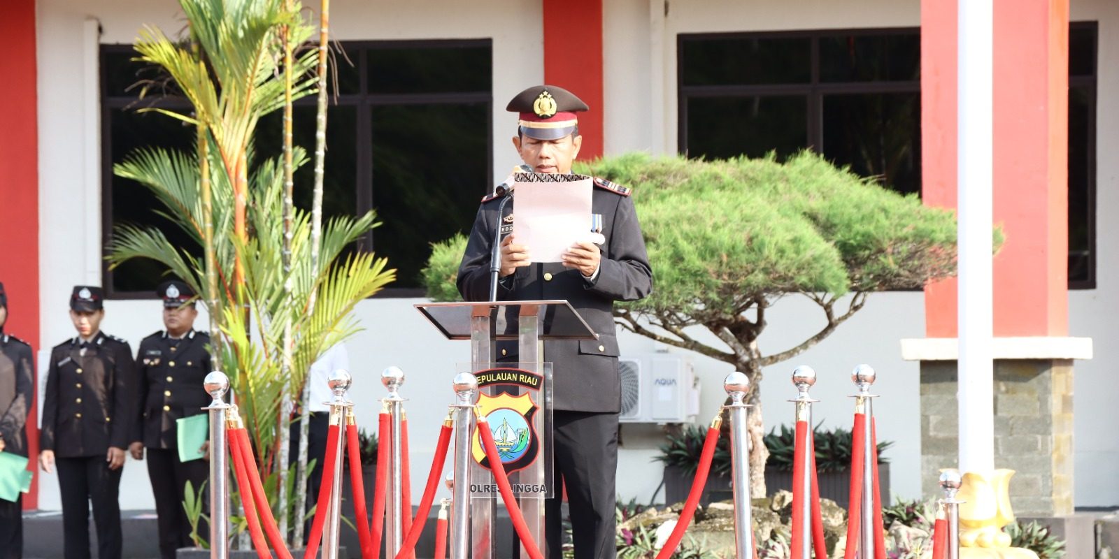 AKBP Apri Fajar Hermanto, S.I.K., Kapolres Lingga di Wakili AKP Edi Suryanto Kabag Ops Polres Lingga membacakan Amanat Menteri Sosial RI, Drs. H. Saifullah Yusuf. Amanat tersebut menyampaikan Tema Hari Pahlawan 2024 yakni “Teladani Pahlawanmu, Cintai Negerimu” yang mengandung makna bahwa setiap pemikiran dan tindakan harus didasari semangat kepahlawanan demi kemajuan bangsa.