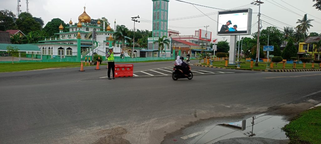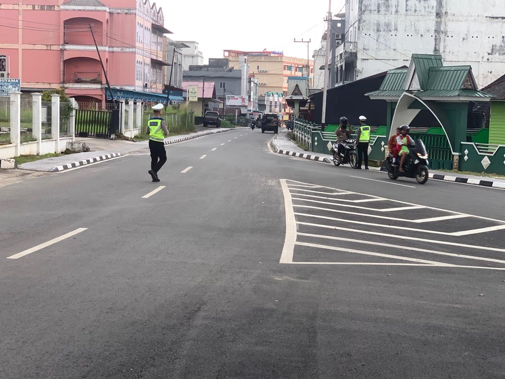 Salah satunya yakni pengaturan arus lalin yang dilakukan pada Simpang Patung dan beberapa lokasi rawan yang di lakukan oleh Personil Polres Lingga.