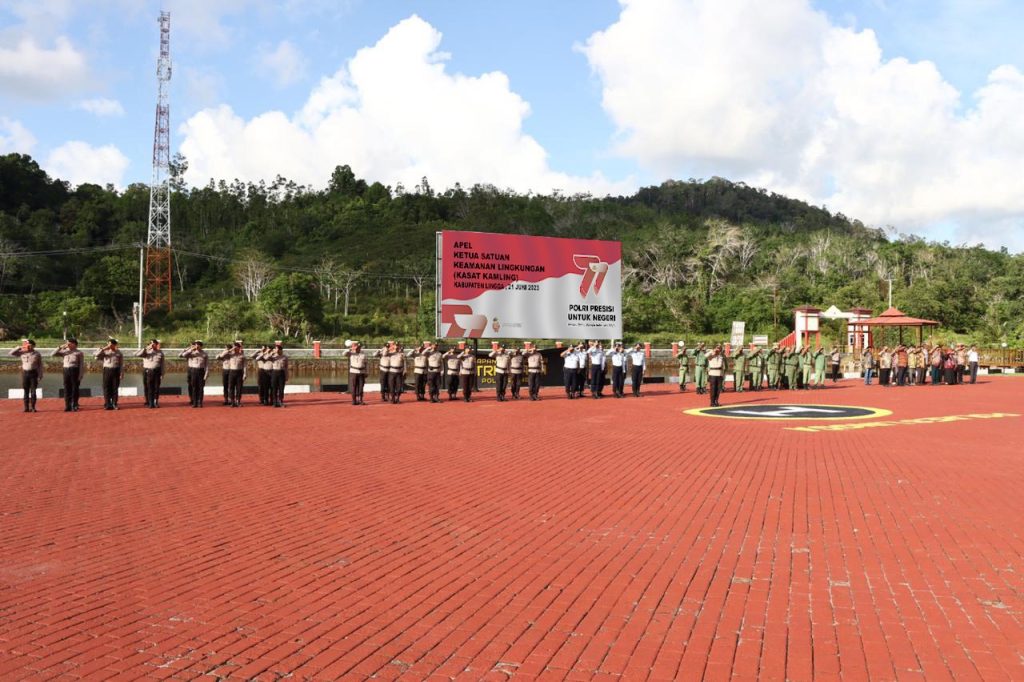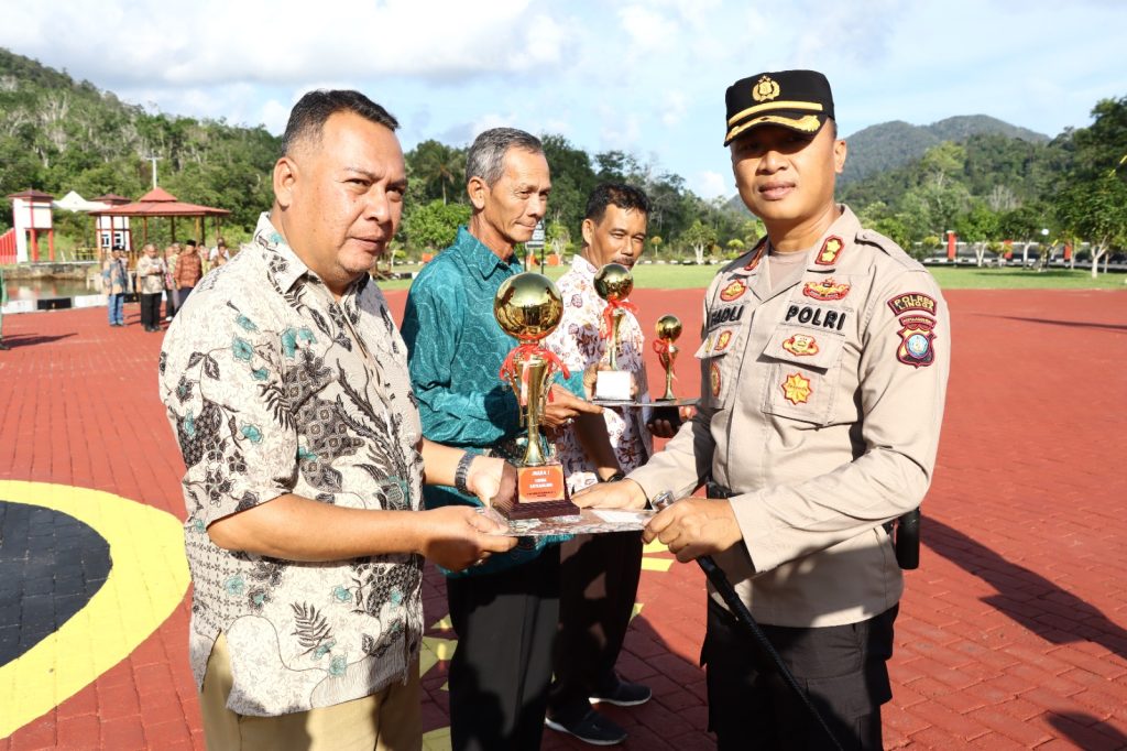 Tribratanews.kepri.polri.go.id- Sambut Hari Bhayangkara ke-77, Kapolres Lingga AKBP Fadli Agus,S.I.K,M.H memberikan tropi dan piagam penghargaan kepada tiga juara lomba Satkamling terbaik, Rabu (21/06/2023) yang berlangsung di Lapangan Tribrata Polres Lingga.