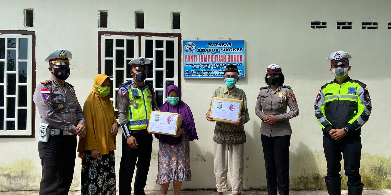 Kegiatan dipimpin langsung oleh Kasat Lantas AKP Awang Rimba Briantoko dan diikuti personil Satlantas Polres Lingga dengan cara mendatangi rumah warga untuk diberikan paket sembako.