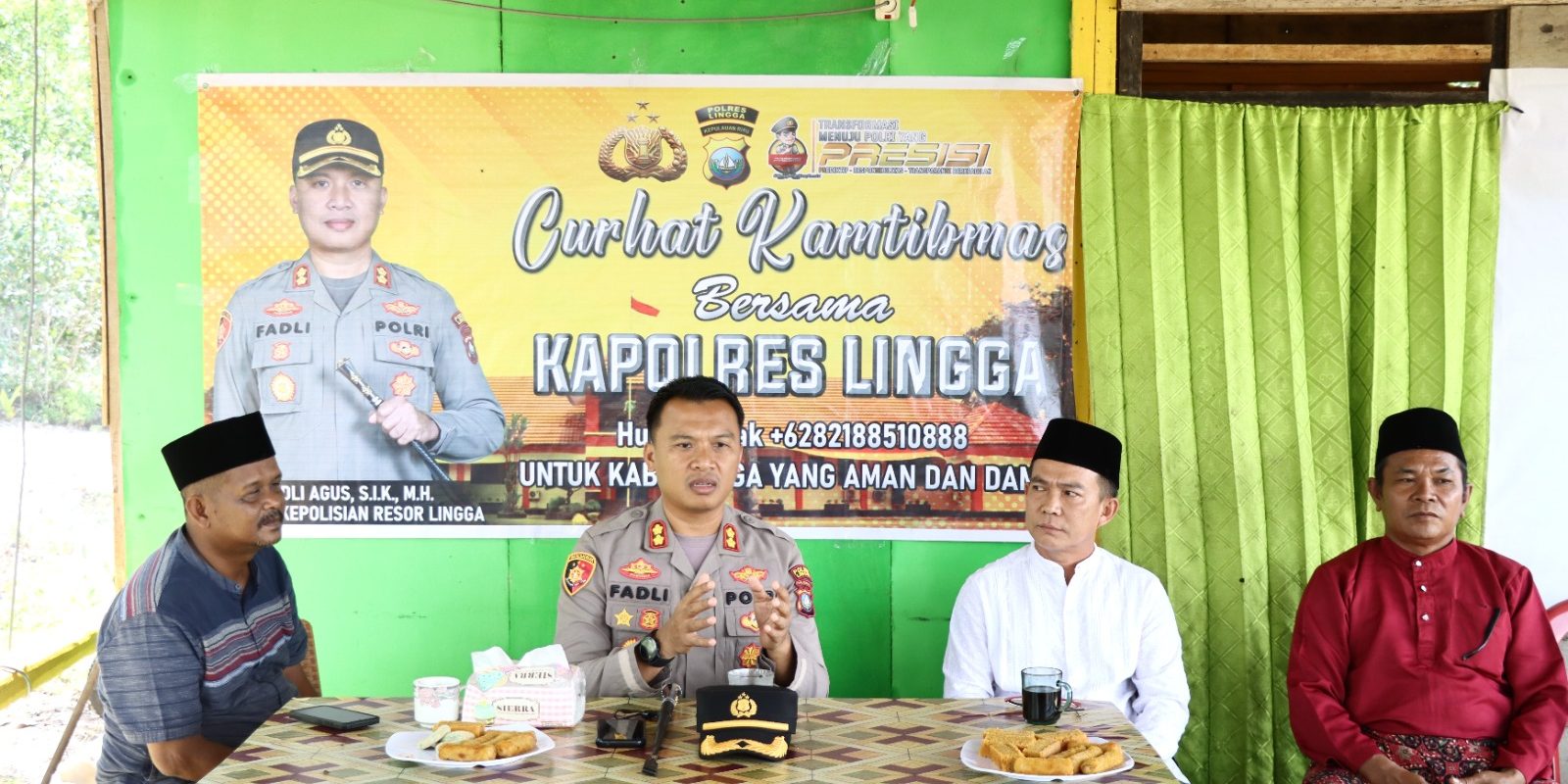 Kapolres Lingga AKBP Fadli Agus,S.I.K,M.H dalam kesempatan tersebut menyampaikan kegiatan ini dalam rangka peningkatan pelayanan Polri dengan cara hadir di tengah masyarakat mendengarkan curhatan masyarakat, keluh kesah dan menyampaikan pesan atau informasi Kamtibmas dari masyarakat untuk bersama-sama mencari solusinya guna menciptakan wilayah Kabupaten Lingga yang aman, nyaman dan kondusif.
