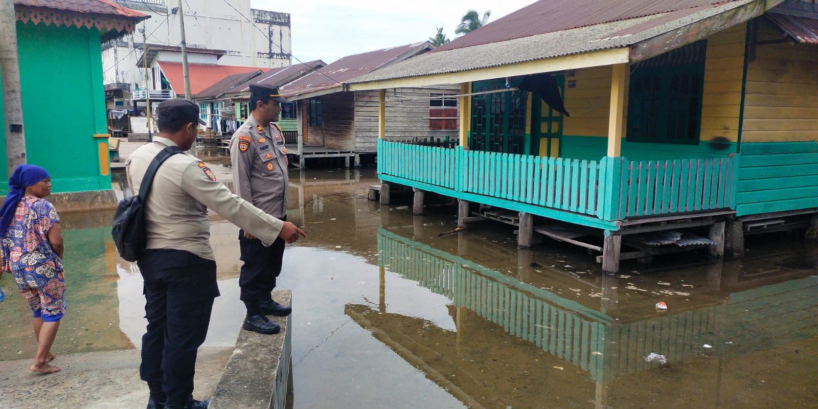 LINGGA – IPTU Henry Gunawan Kapolsek Singkep Barat melaksanakan pemantauan terhadap kondisi warganya yang terdampak banjir Rob yang disebabkan oleh pasang air laut yang naik, menggenangi halaman rumah warga di RT.002, RW.001 Desa Marok Tua, Kec. Singkep Barat, Selasa (24-12-2024).