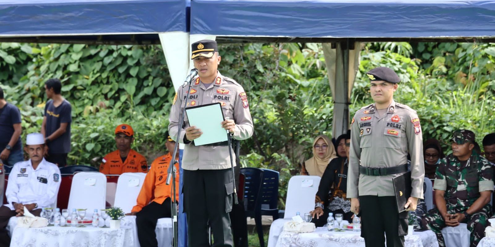 Bertempat di halaman kantor Bupati Lingga Upacara tersebut di pimpin oleh Kapolres Lingga AKBP Fadli Agus,S.I.K,M.H yang di hadiri Pj. Sekda Kabupaten Lingga H. Armia, S. Pd., M. IP, Dandim 0315 Bintan diwakili Pabung LETKOL Ifantri Jonas, Danlanal Dabo Singkep diwakili Mayor Saul, Danpuslatpurmar 9 Dabo Singkep Mayor Qomaruzaman, Para OPD Jajaran Pemerintah Kabupaten Lingga, PJU Polres Lingga, Para Camat se-Kabupaten Lingga dan Kades se- Kabupaten Lingga.