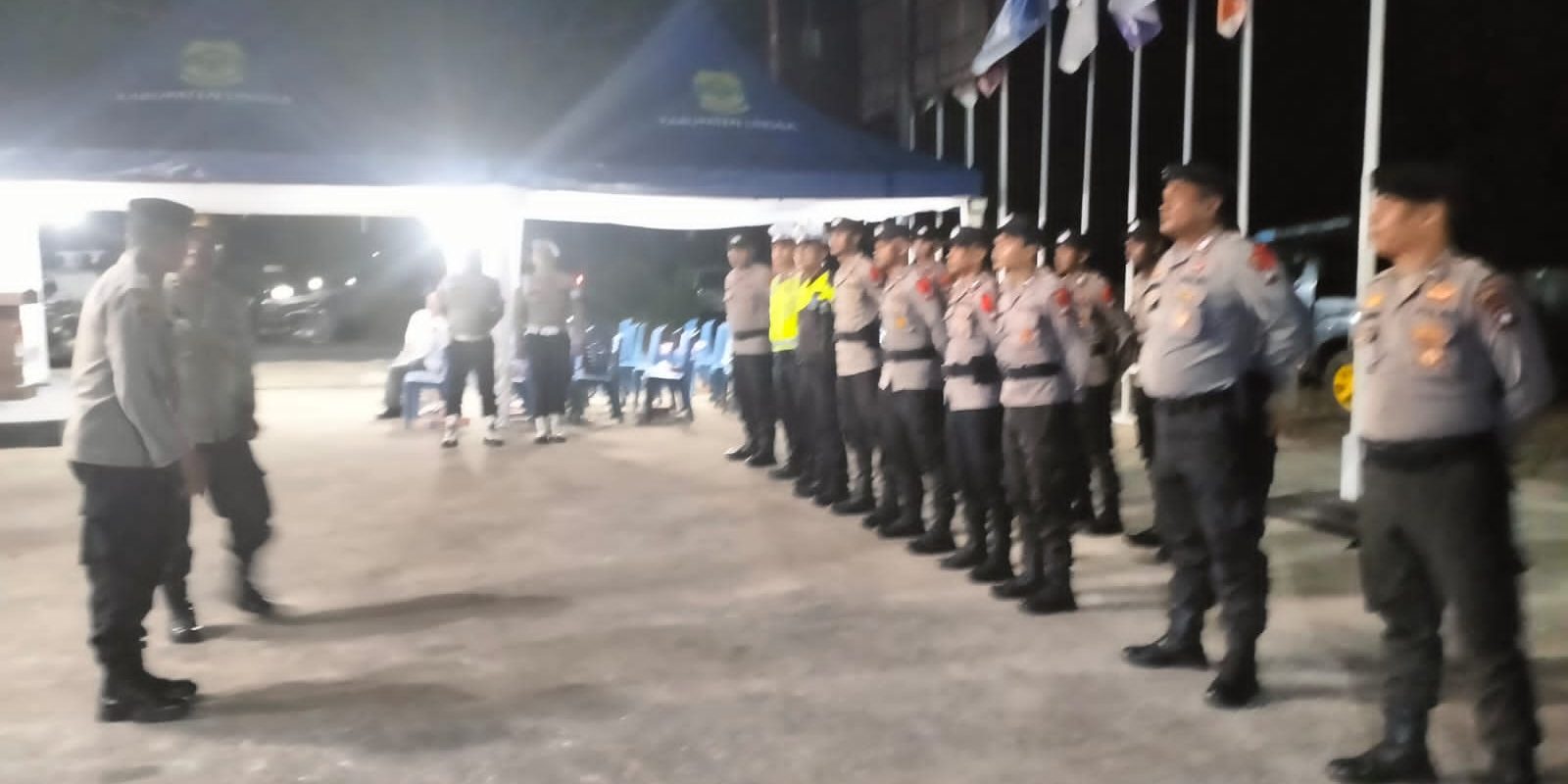 LINGGA-Hari terakhir pendaftaran Calon Kepala Daerah aparat Kepolisian terus bersiaga di Kantor KPU Kabupaten Lingga, Kamis (29/8/2024).