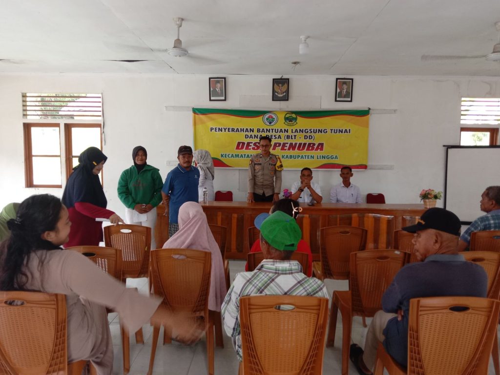 Kegiatan yang dimulai pukul 08.30 WIB tersebut dihadiri oleh Kepala Desa Penuba Safri, Ketua BPD Samsol, Bhabinkamtibmas Desa Penuba BRIPTU Andika Laksono, Kasi Kesejahteraan dan Pelayanan Ratnasari, serta masyarakat penerima bantuan.