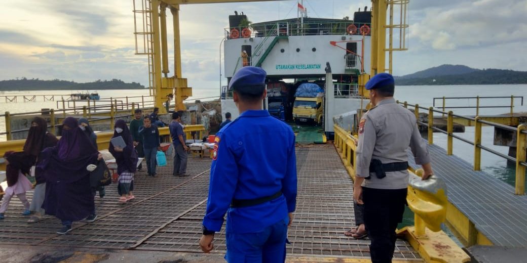 LINGGA – Dalam rangka menjaga keamanan dan ketertiban masyarakat (kamtibmas) serta mencegah terjadinya potensi gangguan keamanan di wilayah pelabuhan dan mengantisipasi cuaca ekstrim, Personel Satpolairud Polres Lingga melaksanakan pengamanan, pengaturan dan himbauan aktivitas penyeberangan dan pelayaran bagi masyarakat di dermaga pelabuhan Jagoh, Kecamatan Singkep Barat. Kegiatan ini dilakukan secara rutin untuk memberikan rasa aman dan nyaman serta selamat saat berlayar kepada pemilik modal transfortasi laut dan masyarakat yang menggunakan jasa angkutan laut. Jumat, (17-1-2025).