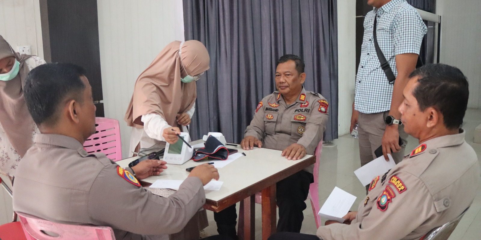 Pemeriksaan dilakukan oleh tim medis gabungan dari Puskesmas Dabo dan Seksi Dokkes (Kesehatan) Polres Lingga. Beberapa parameter penting yang diperiksa meliputi tekanan darah, kadar gula darah, dan asam urat. Hasil skrining akan menjadi acuan dalam tindakan medis lanjutan serta pemantauan rutin kesehatan personel.