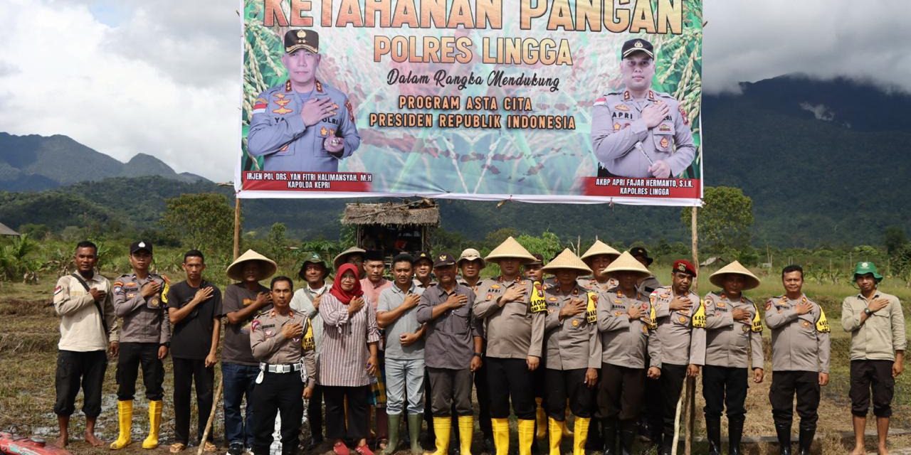AKBP Apri Fajar Hermanto, S.I.K., Kapolres Lingga mengatakan Polres Lingga mendukung Program Ketahanan Program Presiden Tema “Gerakan Nasional Pangan Merah Putih Menuju Swasembada Pangan Berkelanjutan” sesuai yang tertuang di dalam dalam ASTA CITA poin nomor 2 yaitu : “Memantapkan Sistem Pertahanan Keamanan Negara dan Mendorong Kemandirian Bangsa melalui Swasembada Pangan, Energi, Air, Ekonomi Kreatif, Ekonomi Hijau, dan Ekonomi Biru”, Dengan Mengubah Lahan tidur menjadi Lahan Produktif.
