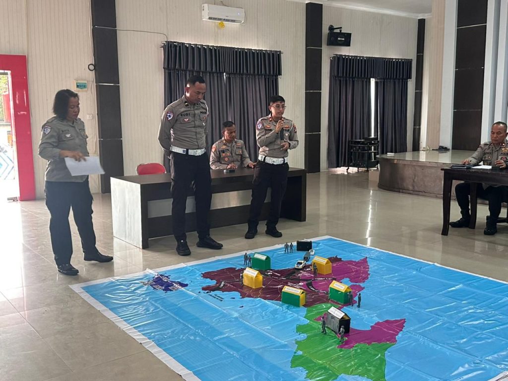 Lingga – Polres Lingga menggelar kegiatan Tactical Floor Game (TFG) dalam rangka mematangkan kesiapan pengamanan kunjungan budaya Delegasi Pejabat Setia Usaha Kerajaan (PSUK) Negeri Pahang ke Kabupaten Lingga yang akan berlangsung pada tanggal 25 hingga 28 April 2026. Kegiatan tersebut dilaksanakan di Gedung Endra Dharmalaksana (ED) Mapolres Lingga, Rabu (22/4/2026).