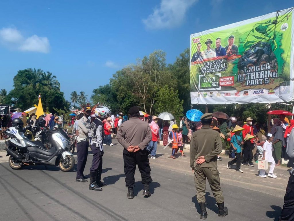 Sejumlah personel Polres Lingga ditempatkan di beberapa titik yang menjadi tempat melintasnya rombongan Pawai.
