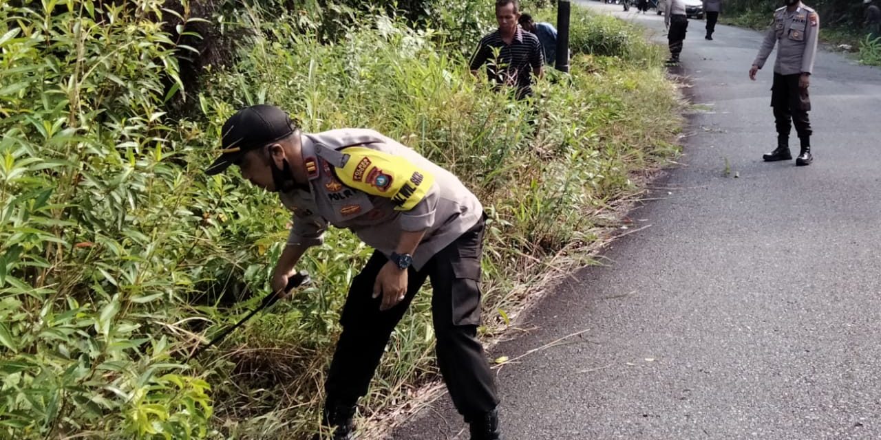 “Adapun Kegiatan Goro tersebut dengan membersihkan Rumput-Rumput yang berada di Bahu Jalan dan membersihkan semak belukar yang menghalangi Penglihatan di tikungan jalan supaya berlalulintas lancar dan menjaga keselamtan berlalulintas”. ujar Kapolsek.