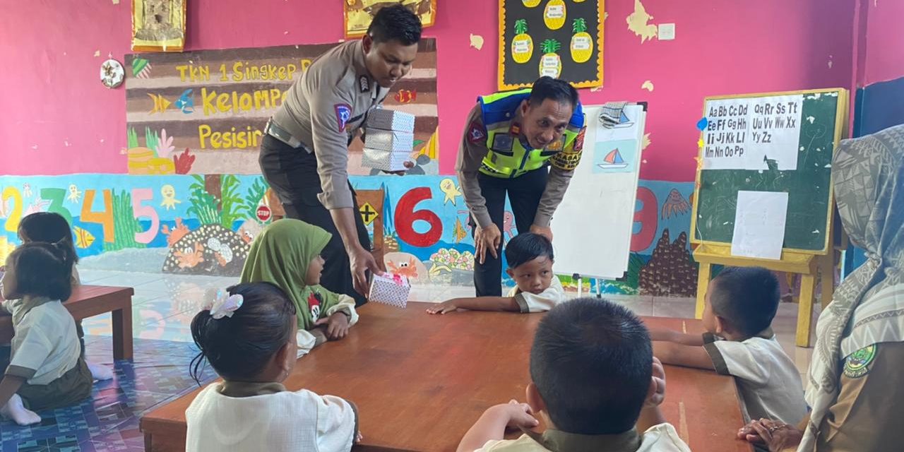 Tribratanews.kepri.polri.go.id- Polisi Sahabat anak (Polsanak), Satuan Lalu Lintas Polres Lingga berikan pengetahuan Lalu Lintas kepada siswa- siswi TK Negeri Singkep Pesisir, Kabupaten Lingga, Kamis (2/05/2024).