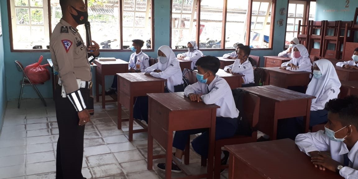 “Selain melakukan Sosialisasi Kamseltibcar lantas, pihaknya juga mensosialisasikan Protokol Kesehatan ( Prokes) dengan membagikan masker sebanyak 100 lembar dan berikan imbauan Kepada Pelajar agar mematuhi Prokes diantaranya mengunakan masker, menjaga jarak saat berada di dalam ruangan belajar, menghindari kerumunan, Selalu mencuci tangan dengan sabun.” pungkas Kasat Lantas