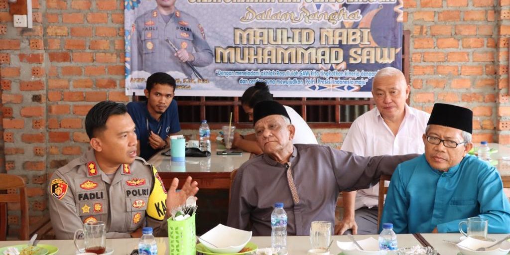 Tribratanews.kepri.polri.go.id-Dalam rangka Maulid Nabi Muhammad SAW 1445 H dan terciptanya silaturahmi dengan warga Masyarakat di wilayah hukum Polres Lingga. Kapolres Lingga AKBP Fadli Agus, S.I.K, M.H menggelar silaturrahmi kepada para tokoh agama serta tokoh masyarakat di Kecamatan Singkep di Warung Makan Olek Dabo Singkep, Selasa, 3 Oktober 2023.