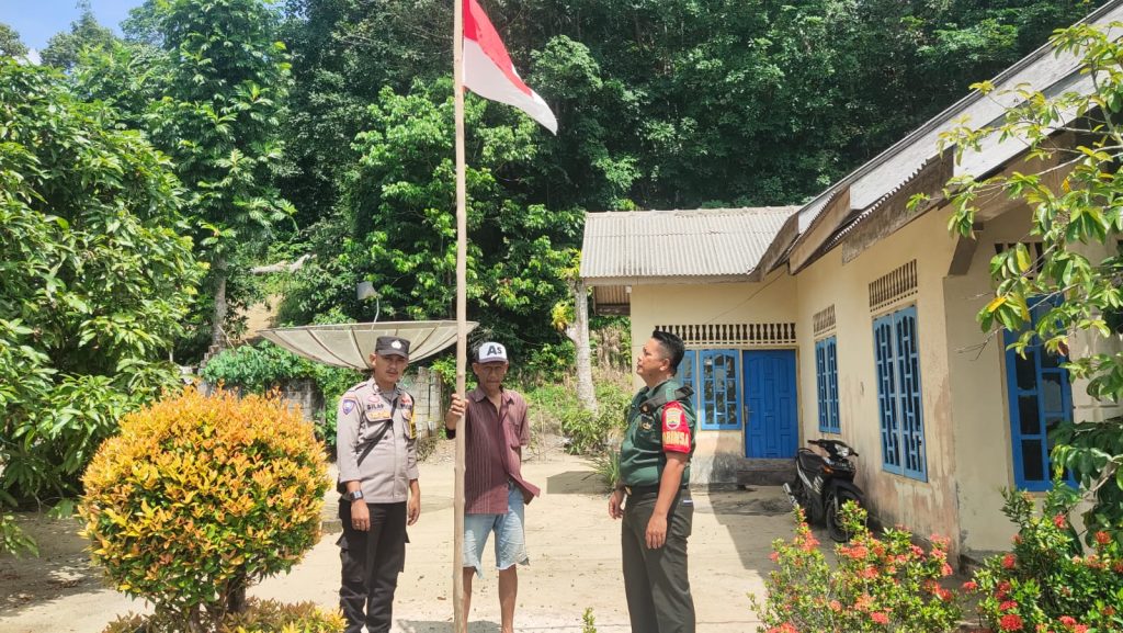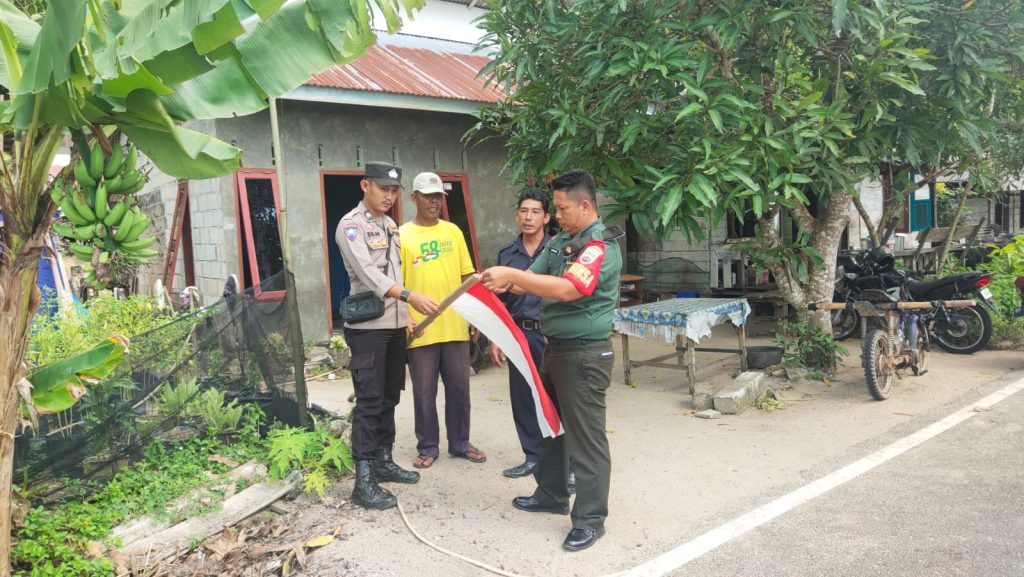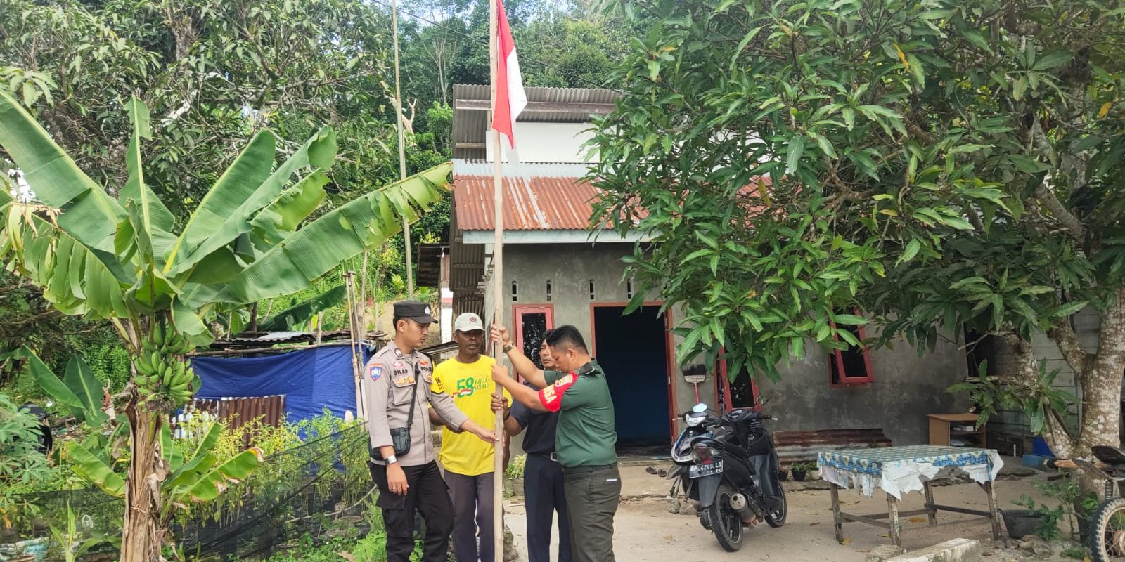 Tribrtaanws.kepri.polri.go.id- Menyambut HUT Kemerdekaan ke-78 Republik Indonesia, cara unik ditunjukkan anggota TNI dan Polri di Desa Persing dalam menyerukan dan mengingatkan warga untuk memasang Bendera Merah Putih.