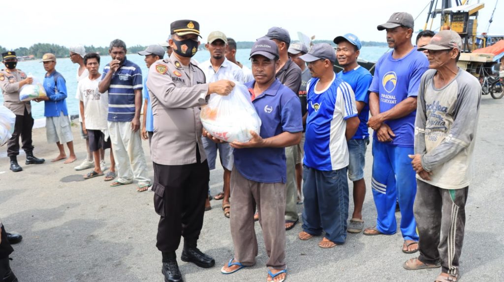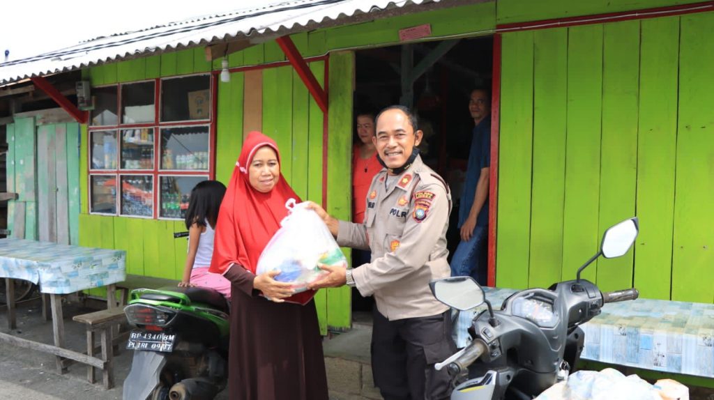 Terkait Kanaikan Harga BBM, Polres Lingga Bagikan Bansos Kepada Buruh Pelabuhan dan Ojek
